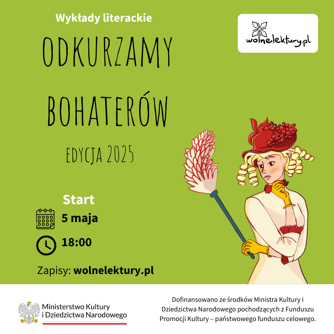 Naszym celem jest pokazanie bohaterek i bohaterów z lektur szkolnych w zupełnie nowych, świeżych kontekstach, bliskich młodemu czytelnikowi. Każdy wykład będzie trwał godzinę zegarową. Zajęcia będą odbywały się online za pośrednictwem naszego kanału YouTube. Zachęcamy do brania udziału w zajęciach na żywo i zadawania na czacie pytań prowadzącym! Będzie można także obejrzeć wykłady w późniejszym, wybranym przez siebie czasie.