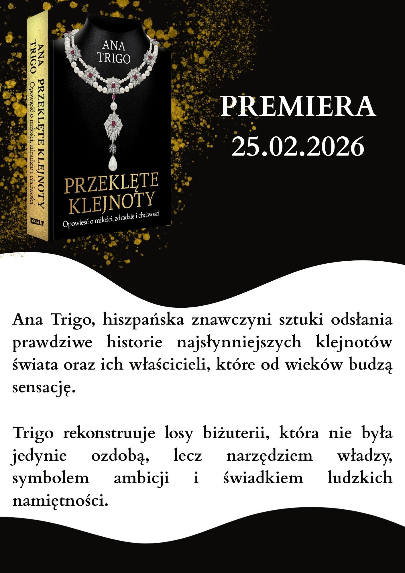 Ana Trigo, pisarka i znawczyni sztuki odkrywa przed nami sekrety piękna, które uzależnia – i tych, którzy uwierzyli, że mogą je posiąść.„Serdeczne gratulacje dla pisarki za tak wspaniały pomysł! Oby pisała jeszcze więcej na podobne tematy. W każdym klejnocie, antyku czy przedmiocie, który przetrwał przez lata, kryje się historia – opowieść o ludziach, rodzinach, wydarzeniach… To niezwykle fascynujące”.