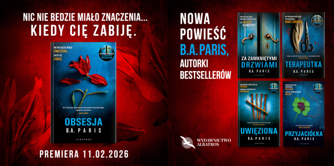 Jak dotąd B.A. Paris wydała 7 powieści – wszystkie były nominowane do Bestsellera Empiku. Statuetkę Bestsellera Empiku w kategorii „literatura zagraniczna” zapewniła jej wydana w 2021 roku Terapeutka. Kolejną, w kategorii literatura popularna” otrzymała za Uwięzioną. Po wydanej w 2024 roku Przyjaciółce, pisarka zrobiła sobie rok przerwy, by skupić się na powiększającej się rodzinie (ma pięć córek i już kilkoro wnucząt). Teraz powraca z Obsesją, ósmą znakomitą powieścią.