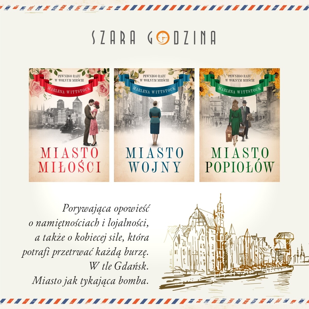 12 sierpnia ukaże się trzyczęściowa powieść pióra Marleny Wittstock ,,Pewnego razu w Wolnym Mieście”. To wzruszająca i pięknie napisana historia wielkiej miłości. To opowieść o zwykłych ludziach, których ścieżki życia wytyczyła wojna. Na kartach powieści pojawia się plejada barwnych postaci i Gdańsk lat 1929–1950. Autorka z doskonałym wyczuciem godzi tajemnice rodzinnej przeszłości z próbą odnalezienia spokoju w tym, co niepoznane.