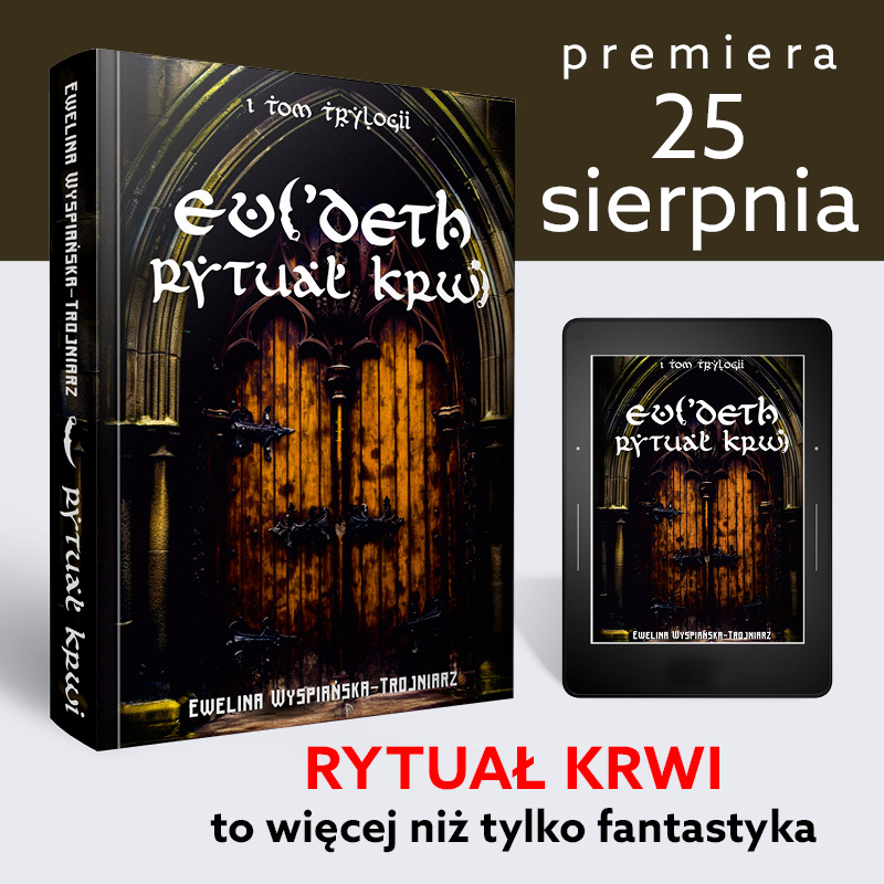 Już 25 sierpnia premierę będzie miała książka “Rytuał krwi”, autorstwa Eweliny Wyspiańskiej-Trojniarz, która wydana została nakładem wydawnictwa BookEdit. To pierwsza część trylogii, która oczarowuje przygodami i zaprasza do mrocznego świata, gdzie zemsta jest tylko jednym z motywów. Autorka zaprezentuje swój debiut literacki podczas zbliżających się Dni Fantastyki, które odbędą się we Wrocławiu w dniach 25-27 sierpnia. Książka odznacza się innowacyjnością w procesie wydawniczym, gdyż do stworzenia grafik wykorzystano sztuczną inteligencję oraz generator AI.