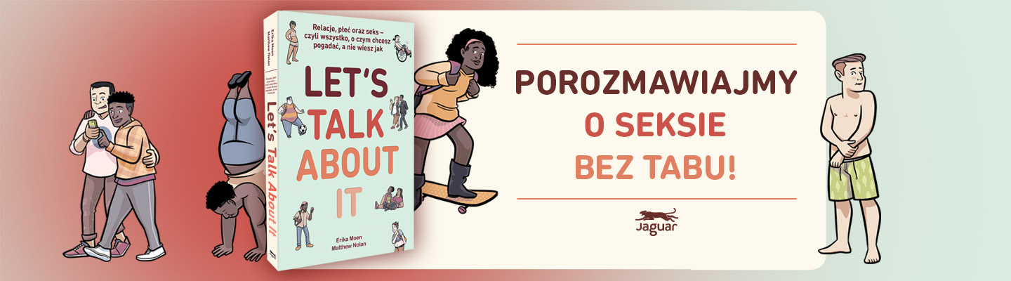 Otwarty na różnorodność i szczery poradnik w formie powieści graficznej – o płci, orientacji seksualnej, wyrażaniu zgody na seks i bezpieczeństwie, gdy ktoś się na niego zdecyduje. Idealna książka dla nastolatków zadających pytania… Czy to, co czuję, jest normalne? To, co się dzieje z moim ciałem, jest normalne? Czy ja jestem normalny/normalna? Skąd mam wiedzieć, które wybory są właściwe? Jak naprawić błąd? Let’s Talk About It to przemyślana, dobrze opracowana powieść graficzna i przewodnik po wszystkim, co musisz wiedzieć, a nie wiesz, jak o to zapytać. Opowiada o związkach, o przyjaźni, o tożsamości płciowej, o orientacji, anatomii, obrazie ciała, ale też o bezpiecznym seksie, sekstingu, odrzuceniu, edukacji seksualnej i wielu innych ciekawych kwestiach.