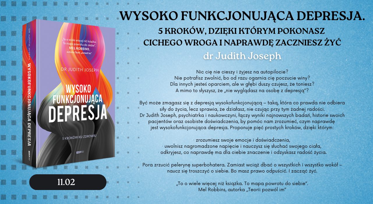 Dr Judith Joseph, psychiatrka i naukowczyni, łączy wyniki najnowszych badań, historie swoich pacjentów oraz osobiste doświadczenia, by pomóc nam zrozumieć, czym naprawdę jest wysokofunkcjonująca depresja. Proponuje pięć prostych kroków, dzięki którym: